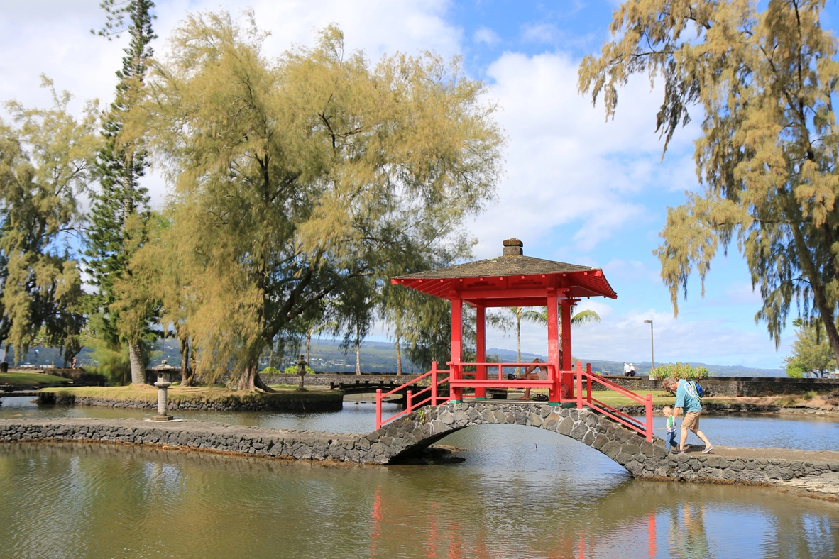 •Lili‘uokalani Park and Gardens. We still can’t decide on the biggest scene-stealer here. A century-old Edo-style Japanese public garden graced with ponds, walking bridges, pagoda, torii gates, a teahouse and lots of space for picnicking, on land given to its creation by Hawai‘i queen Lili‘uokalani. Or a commanding view of Hilo town’s pretty crescent bayfront and 13,803-foot Maunakea volcano from sea level to summit.PUNA